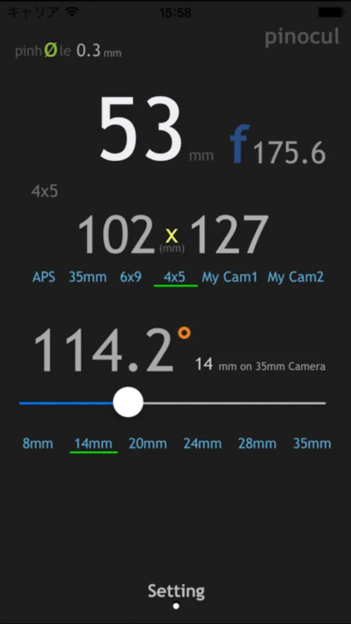 This softwear calculate the thickness of camera by choosing angle and size you'd like to make.