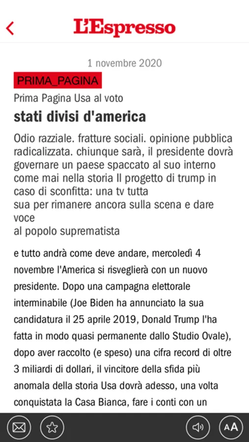 L’applicazione de L’Espresso ti permette in ogni momento di leggere e sfogliare sui tuoi device il settimanale in edicola, con una serie di funzionalità che ti faciliteranno la fruizione degli articoli.