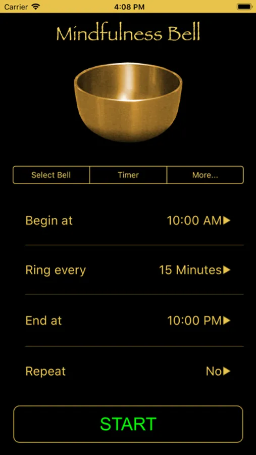 Simply set the times that you want to hear the bell and tap Start. You can then exit the app and the bells will continue to ring throughout the scheduled time period.