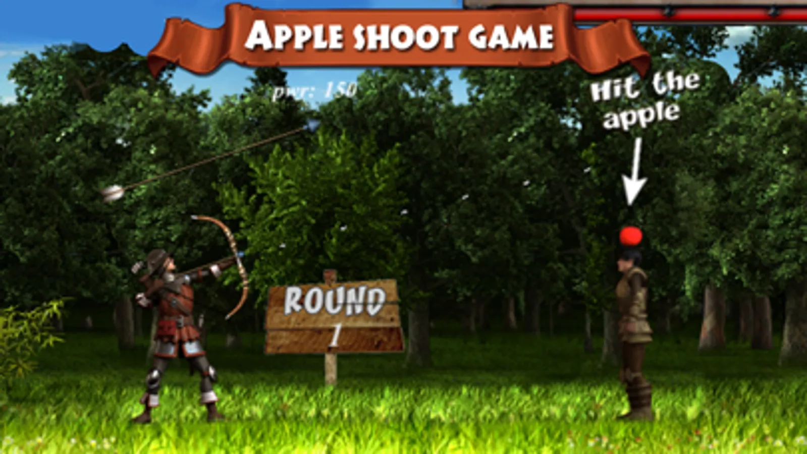 Apple shooting game - shoot the apple off mans head using a bow and arrow. Don't miss or you might kill your opponent. Each level positions you further away thus increasing the difficulty...