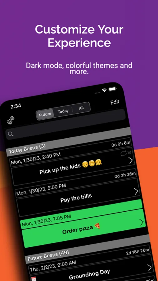 Say goodbye to cluttered lists and hello to a more organized life. Choose from daily plan, weekly, monthly, yearly, or custom intervals to repeat reminders, and customize the actions you take when notified. Import events from your calendar, choose from multiple themes, and take advantage of the Beep Me widget to view today's reminders.