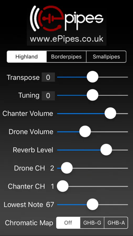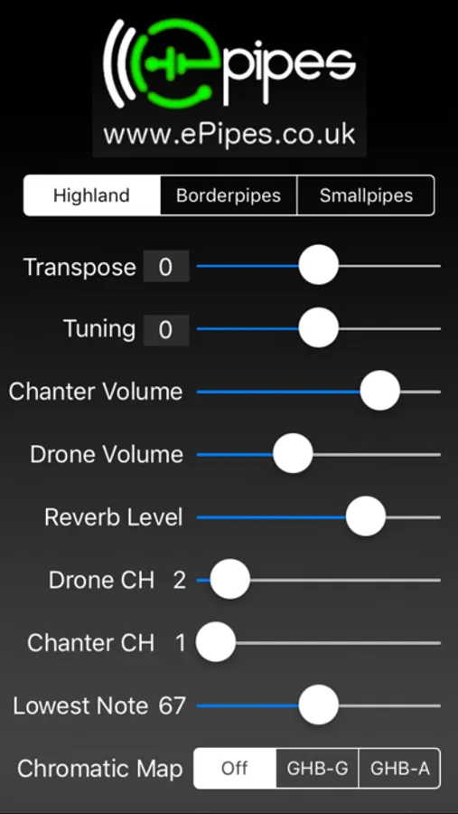 When the Chromatic Map is set to "Off", the app passes the notes directly through with no remapping for chanters that do the GHB fingering mapping in the device.