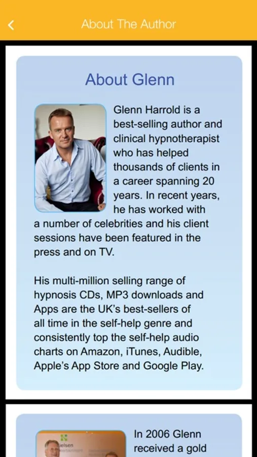Glenn is one of the world's best-selling hypnotherapists with multi-million sales of his Apps, CDs, MP3s and 7 self-help books. He has over 20 years experience as a full-time hypnotherapist and works with many celebrity clients.