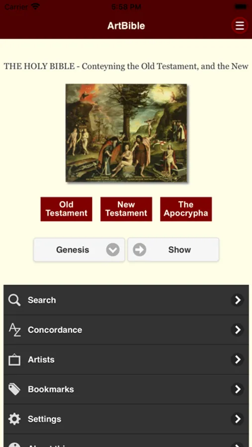 Enjoy the full King James Version of the Bible on your mobile device, so that you can browse through the Old Testament, New Testament and Apocrypha offline at your leisure. Includes many works of art, and a concordance: all words in the Bible, listed alphabetically.