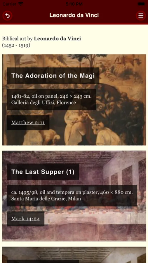Besides the complete text of the Bible, ArtBible includes over 1000 pictures of paintings. Included are works by Rembrandt, Michelangelo, Caravaggio and many other old masters who drew inspiration from the Bible.