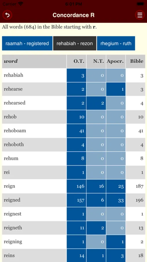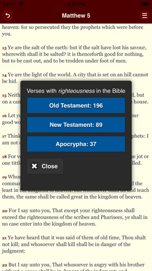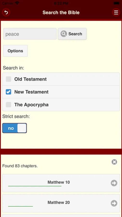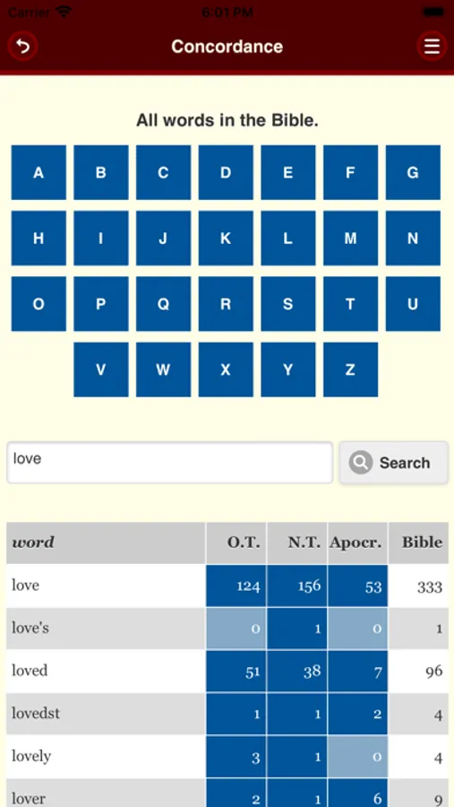 The search function lets you perform targeted queries in the Bible texts.