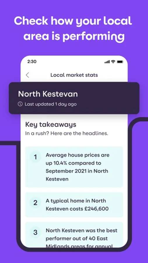 Whether you’re buying, renting, selling or letting, our app keeps you up to speed with the latest properties, prices, running costs and market trends. So you’ll never miss a thing.