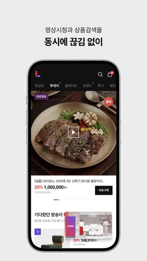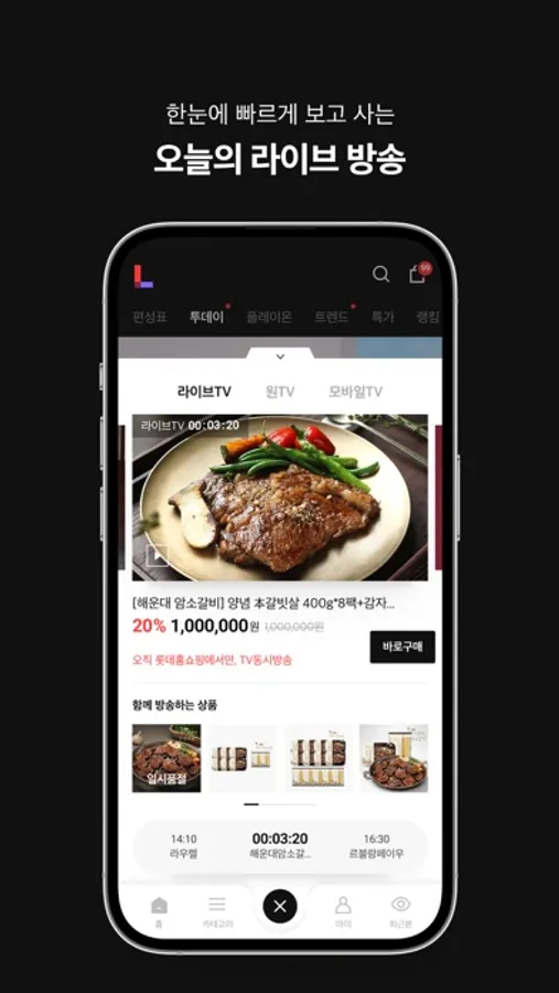 언제 어디서든 생방송 상품을 손쉽게 확인하고, 빠른 구매까지 한번에!