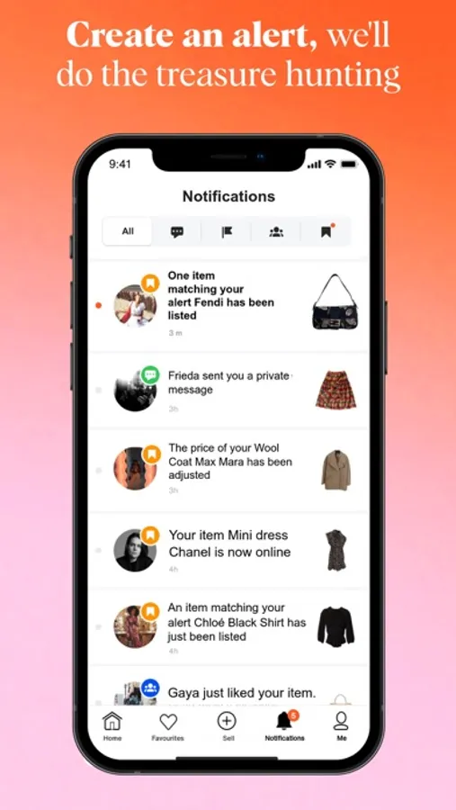 • Personalized notification for designer fashion items you're looking for.