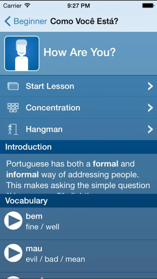 TUDO BEM ® is the award-winning app that makes learning Portuguese simple and fun! Quickly learn essential vocabulary, phrases, and grammar concepts.