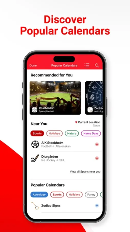 Discover personalized Popular Calendar recommendations to add curated & auto-updating calendars focused on current events. Top categories include Sports, Holidays, Nature & more.