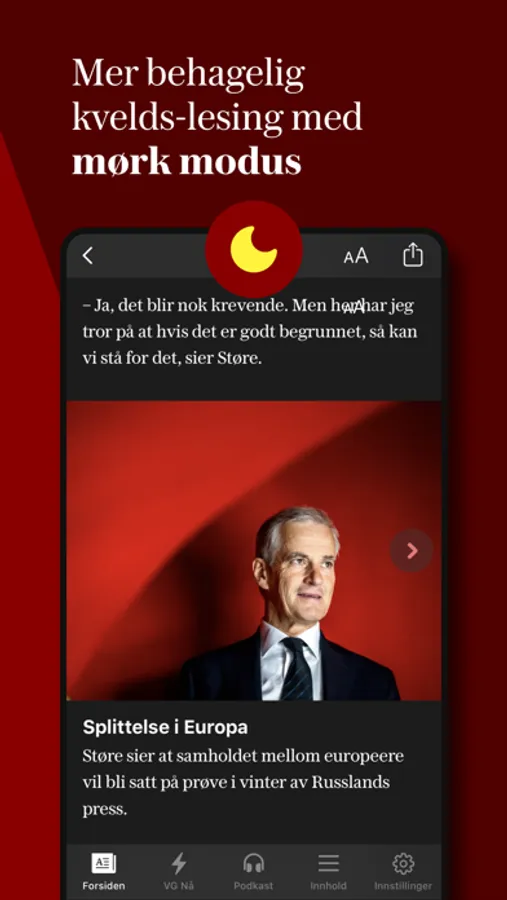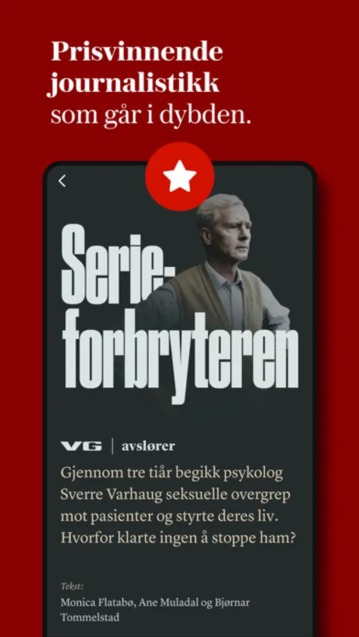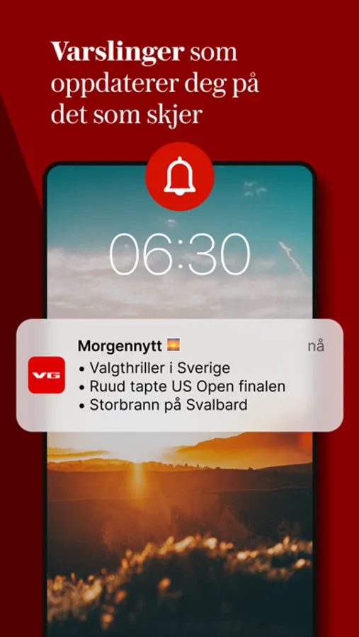 - Abonnér på nyhetsvarsler innenfor kategoriene nyheter, sport, rampelys, VG+, Godt og flere