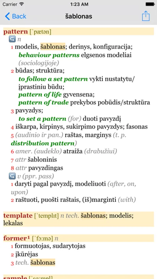 Anglonas app uses a well-known dictionary compiled by Bronislovas Piesarskas back in 2005. Since then, the dictionary is constantly being updated with the latest definitions of words and phrases.