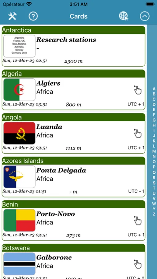 Utility distributed in english and french and providing information about countries, their main cities, size, timezone, country code and lot more...