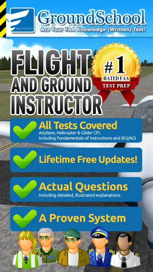 Spend less time studying and more time flying! This is the FAA Flight and Ground Instructor (CFI) version of GroundSchool, our FAA knowledge (written) test preparation featuring up-to-date questions, free updates, and illustrated explanations written by a professional team of pilot examiners and instructors.