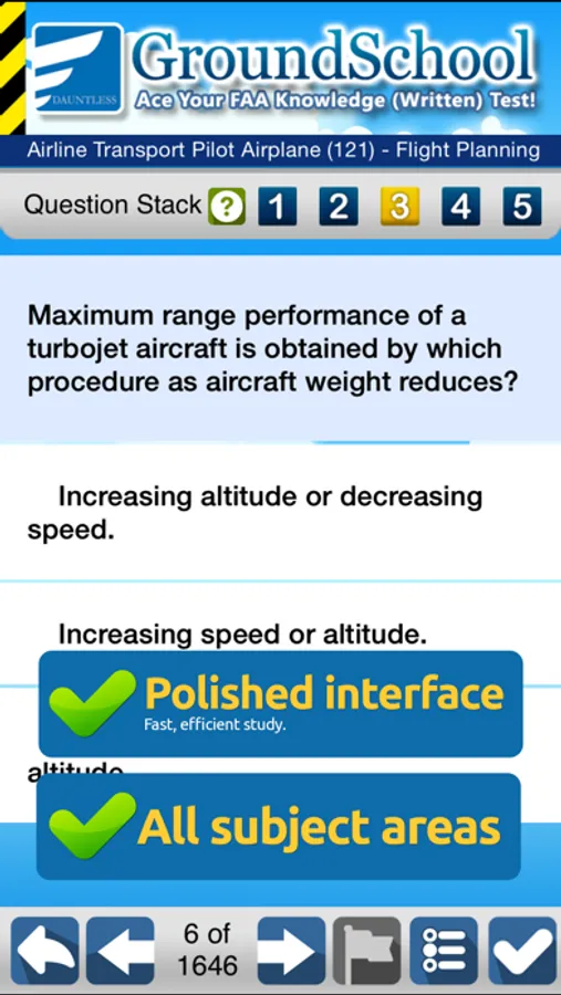 Study actual, up-to-date FAA questions and then ACE your FAA ATP written test the easy way with GroundSchool FAA Knowledge Test Preparation software by Dauntless Aviation, the trusted leader in FAA written test preparation.