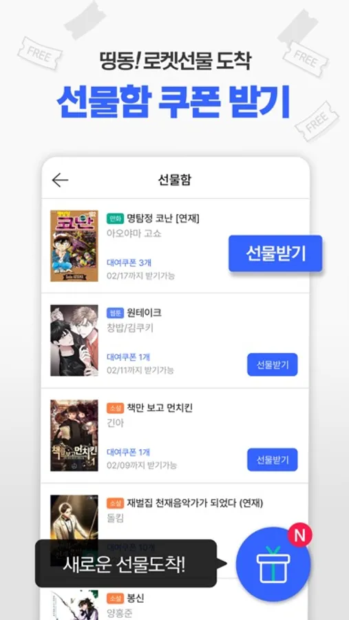 - 무료 쿠폰 혜택이 가~득 담긴 나만의 선물함!