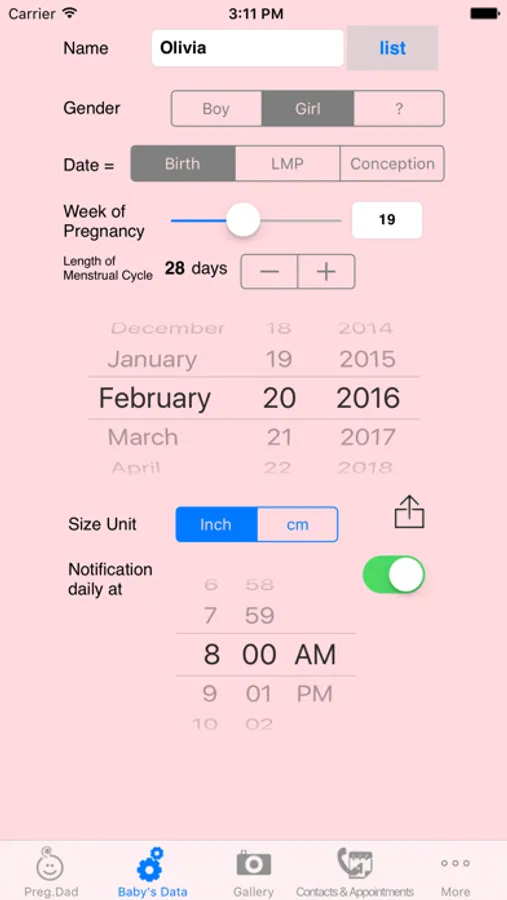 This app provides you with essential information regarding your yet to be born child or twins, while your partner is pregnant.