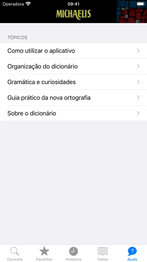 The contents of the entire dictionary follows the Portuguese Language Orthographic Vocabulary (VOLP, 5th edition, March 2009), respecting the changes introduced by the Portuguese Language Orthographic Agreement of 1990.