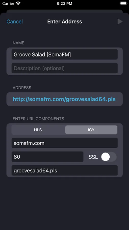 + If your favorite stream isn't available in the StreamS Directory, you can enter any compatible stream address, including MP3, and save it in your Favorites.