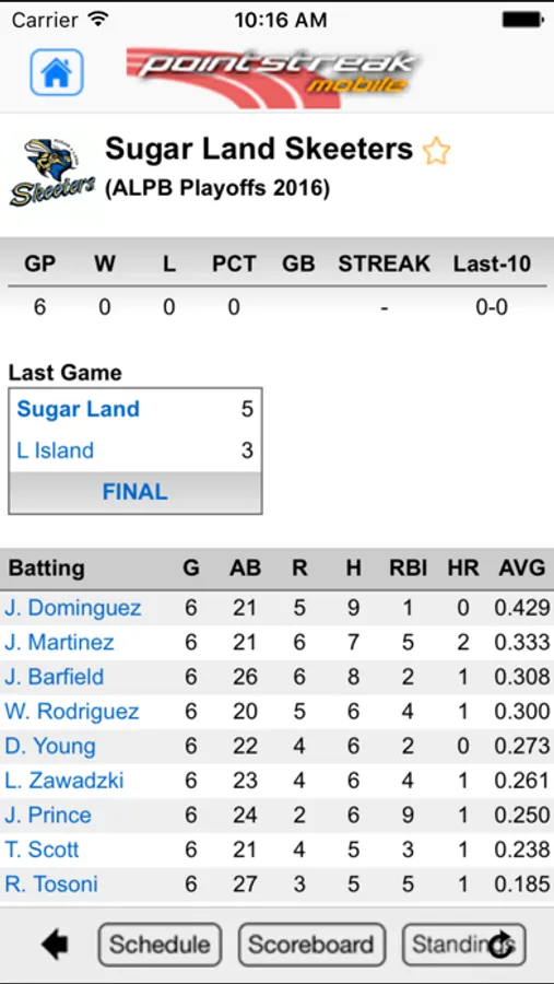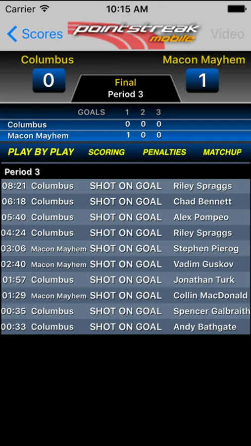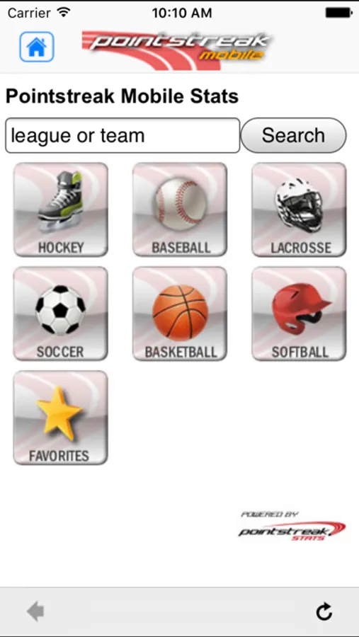 Pointstreak-powered league/team, or check out your own rec team's stats, box scores & schedules. Pointstreak Mobile for iPhone also comes with a mobile-friendly version of GAME LIVE, a rich, graphically pleasing way to enjoy up to the minute game scores and play-by-play stats; and some leagues are participating in our Pointstreak video highlights service.