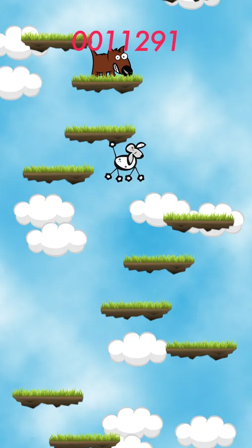 Guide your cheerful poodle ever higher up the grassy platforms past the rolling clouds.