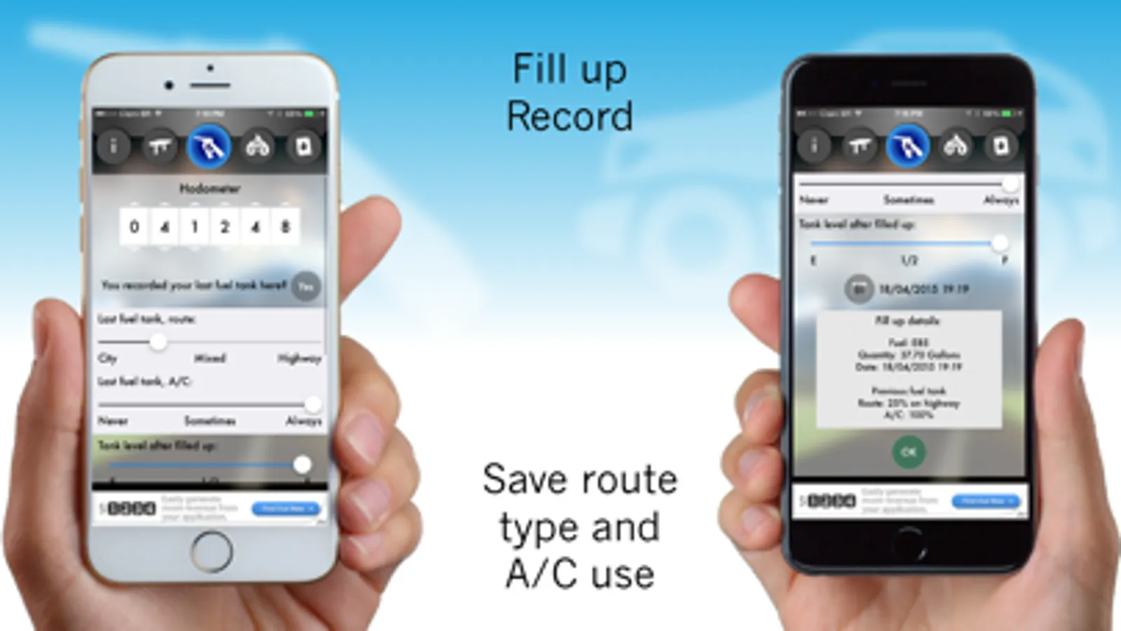 - Insert the fill up record with details like route used in the last fuel tank and the use of A/C. You can even do partial tank fill up (but to use this feature you need to setup the fuel tank volume of your vehicle);