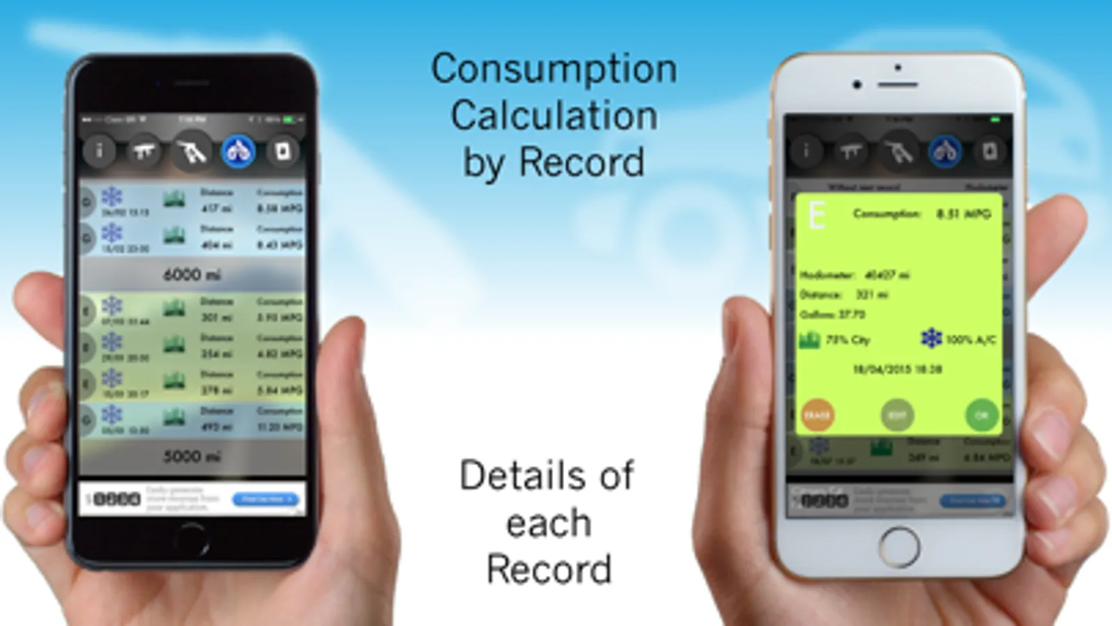 - Everybody likes charts, so do we. Get day by day over time consumption chart and the balance between routes in your records (highway or city);