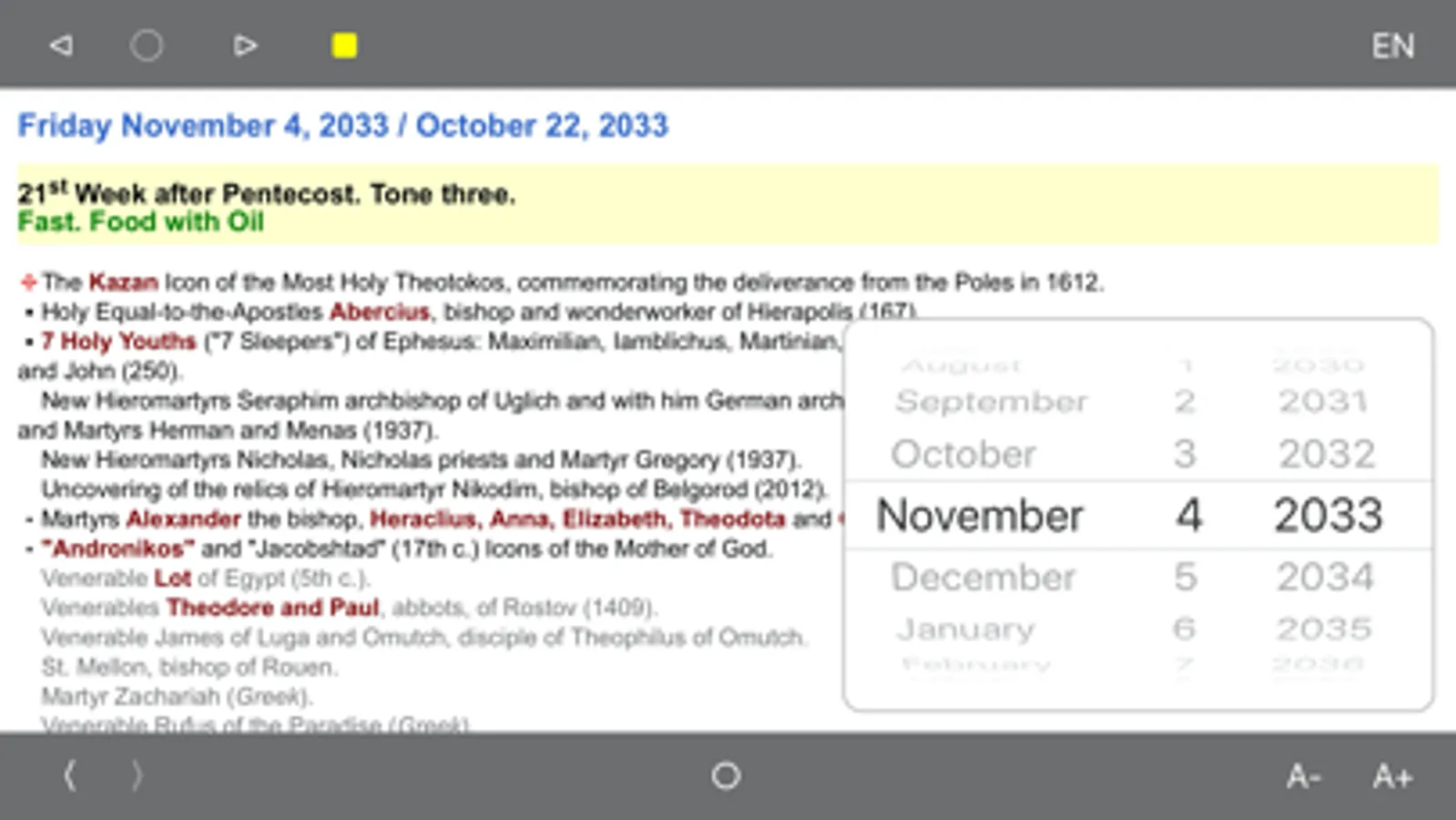 Orthodox Calendar Screenshots