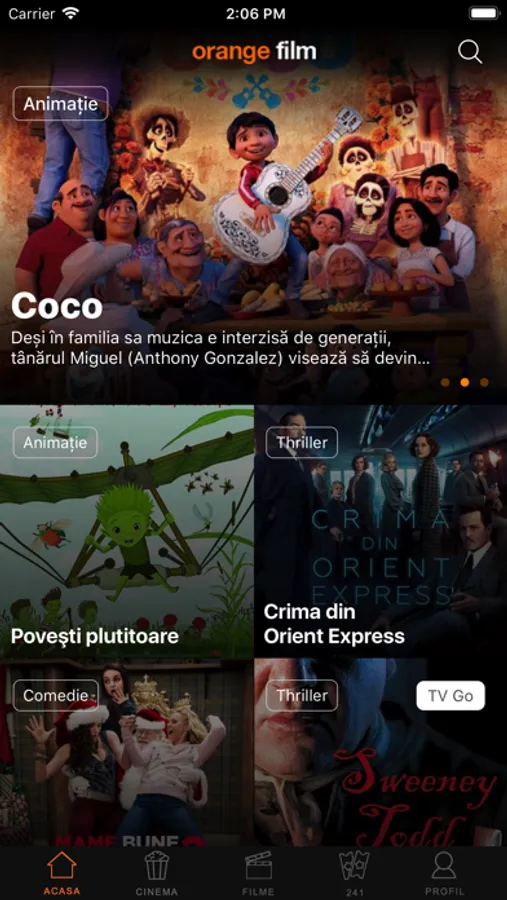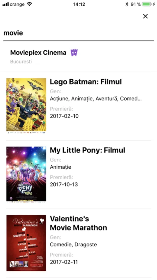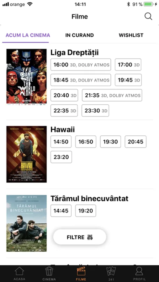 Cinematografele partenere Orange film sunt marcate cu o iconiță dedicată.