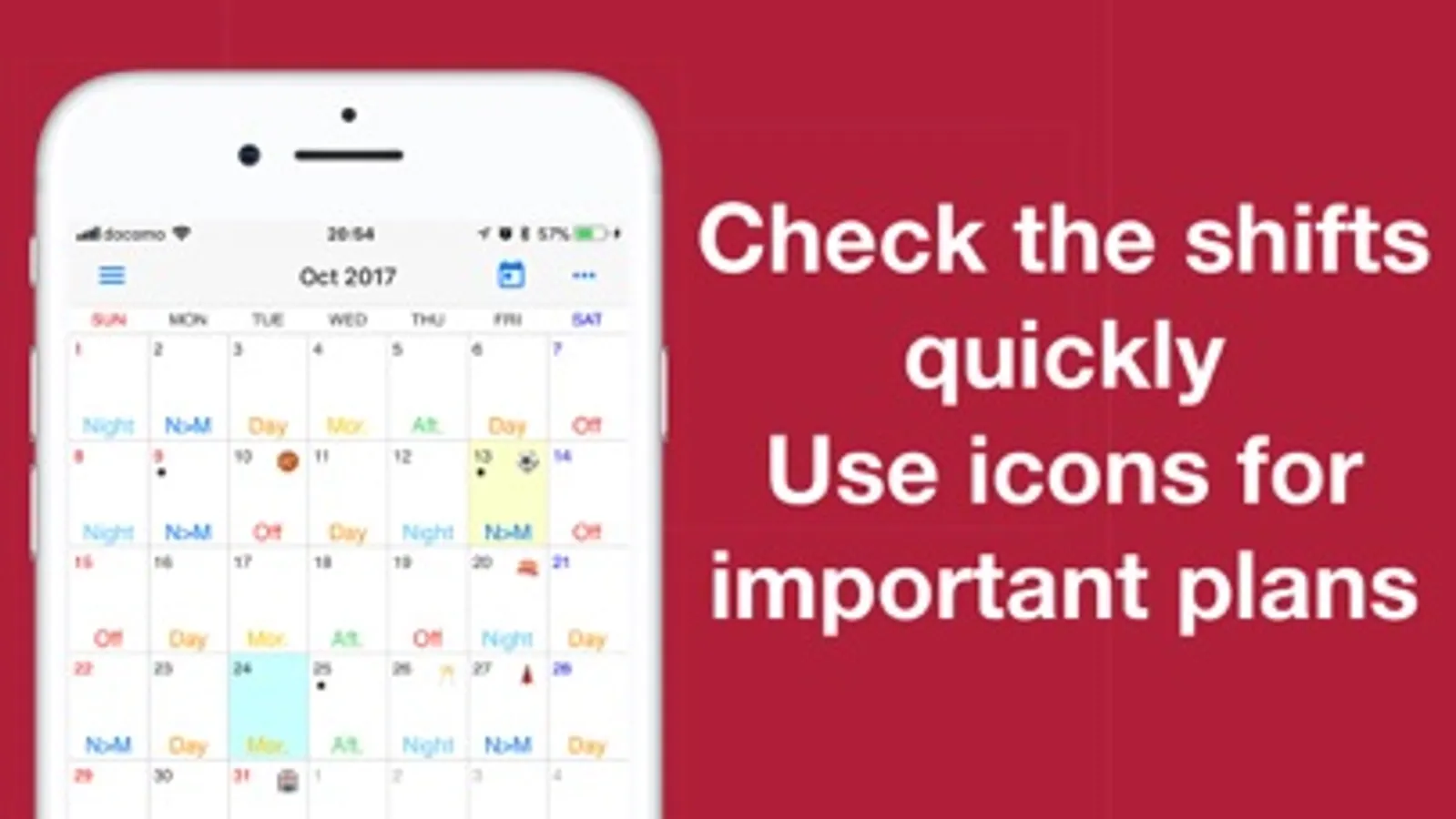 Your shifts are imported to iOS calendar.
