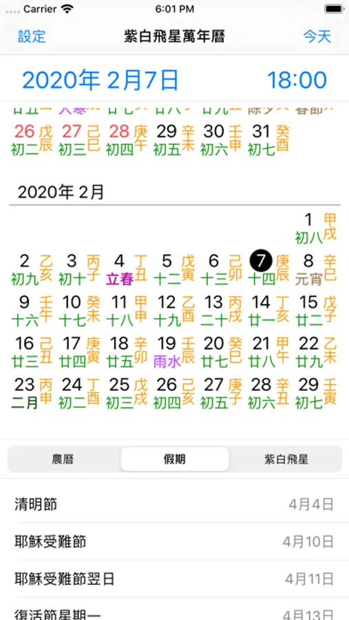 可直接輸入 西曆/農曆 日期/時間 作搜尋