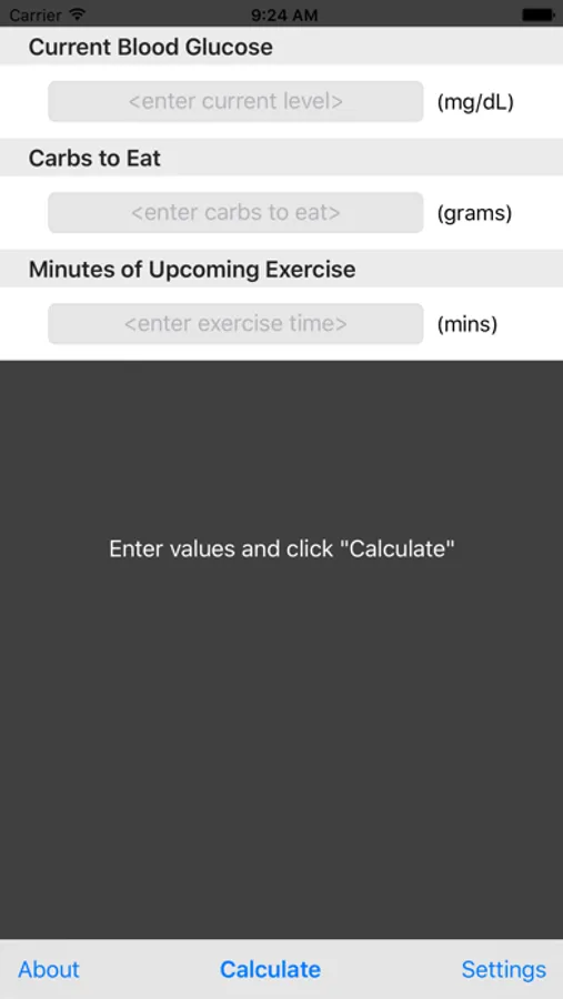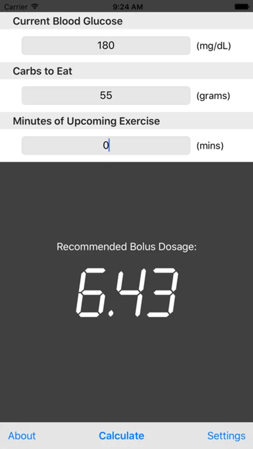 Once the initial setup is complete then iBolusCalc is ready for use.