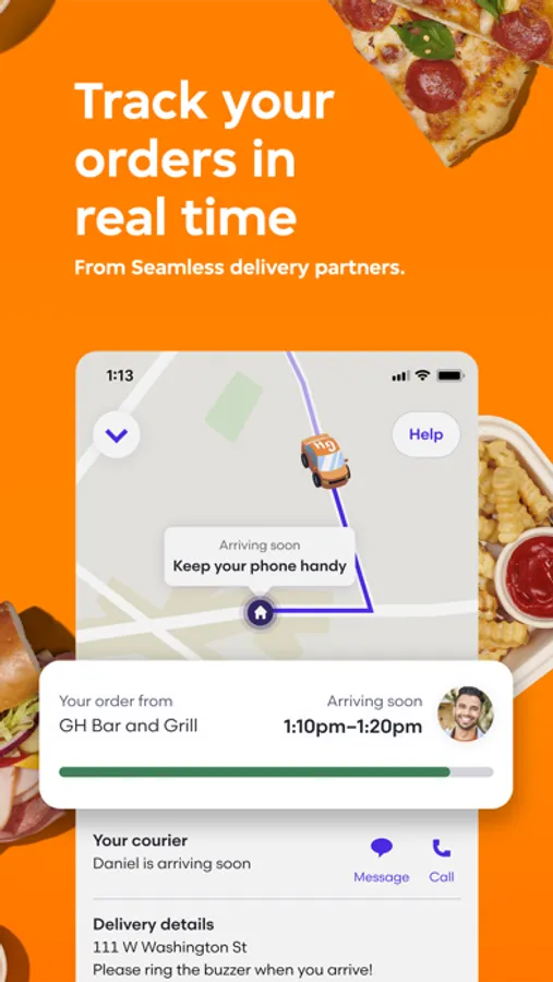 Can’t wait for that burrito bowl? Track food orders from Seamless delivery partners in real time, and know the moment your meal arrives.