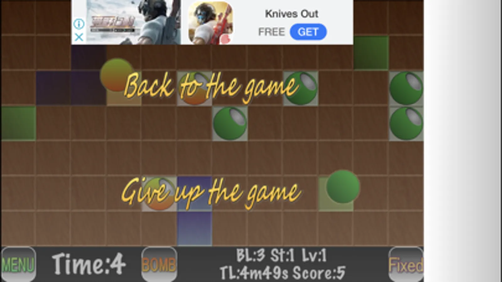 You touch the screen to stop and to move again the balls, using bombs, you get over a pinch.