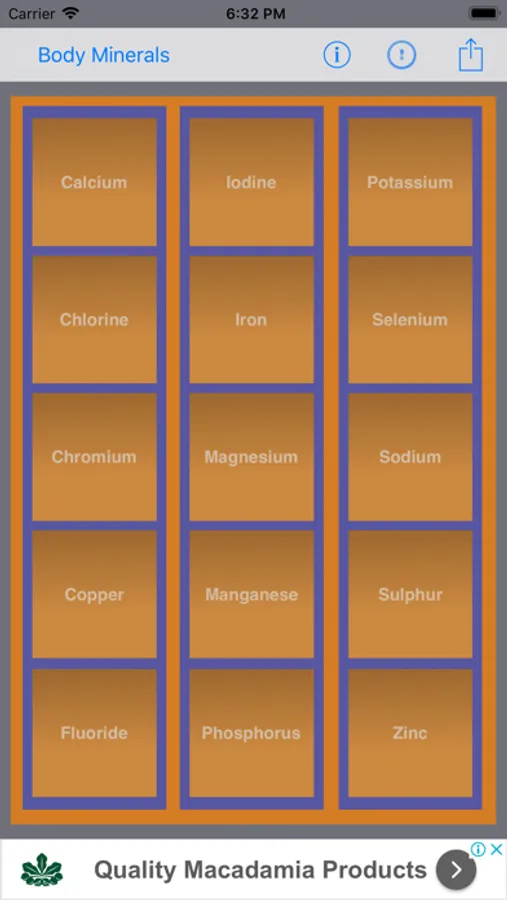 The Body Minerals app answers these questions and provides a valuable information on each mineral at your fingertips on your iPhone/iPod for you to quickly refer whenever you need it.