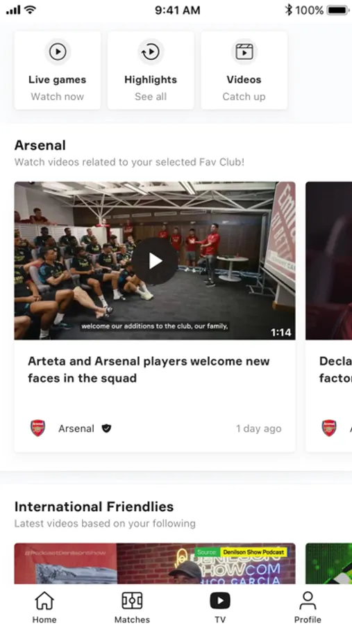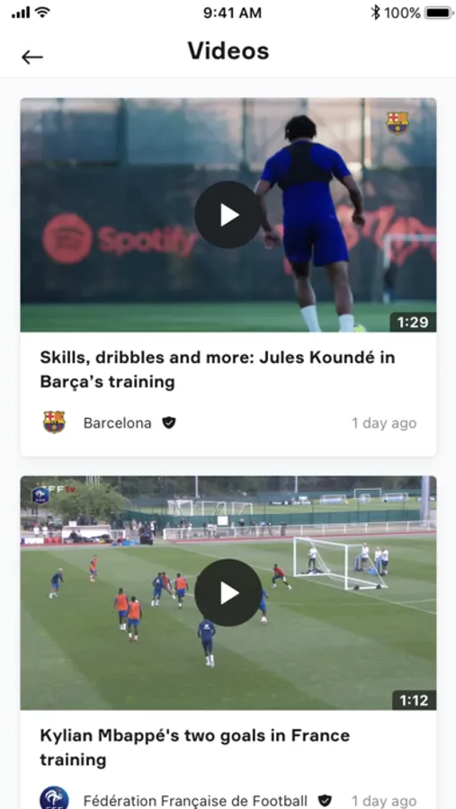 Watch the best soccer videos in one single app: highlights from selected competitions, best goals, social media video post and all OneFootball Original content