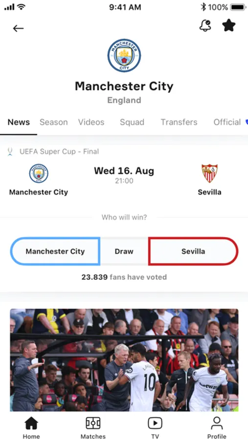 - Club Network: receive the news instantly and directly from the official source thanks to the accounts of clubs such as Real Madrid, Manchester City, Monaco and many more