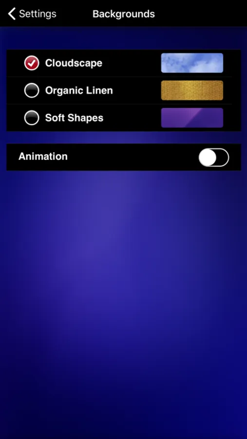 A selection of backgrounds is provided. Choose the background by tapping the image.