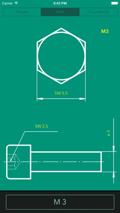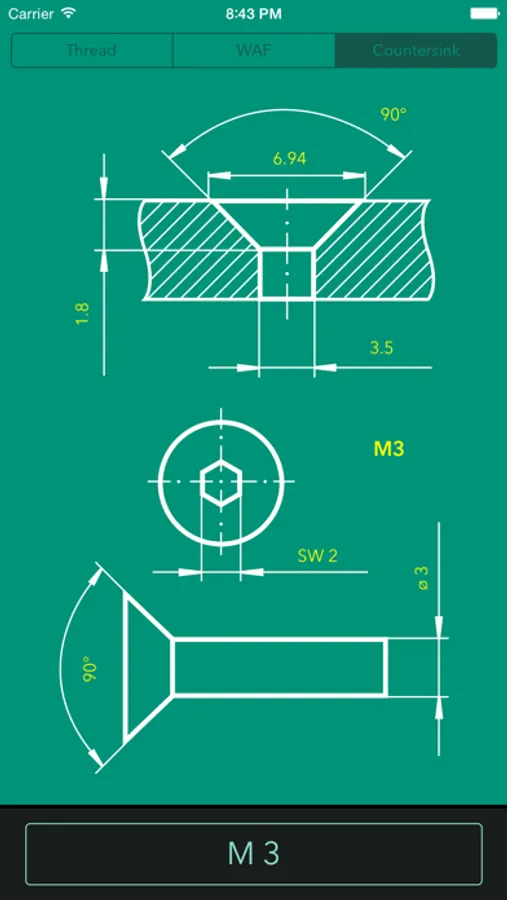 iGewinde converts the values from a selected thread and presents them in a nice and simple drawing form. The app supports all the most used types of threads such as M, MF, UNC, UNF, EG, GAS, Ww, BSF, PG, BA.