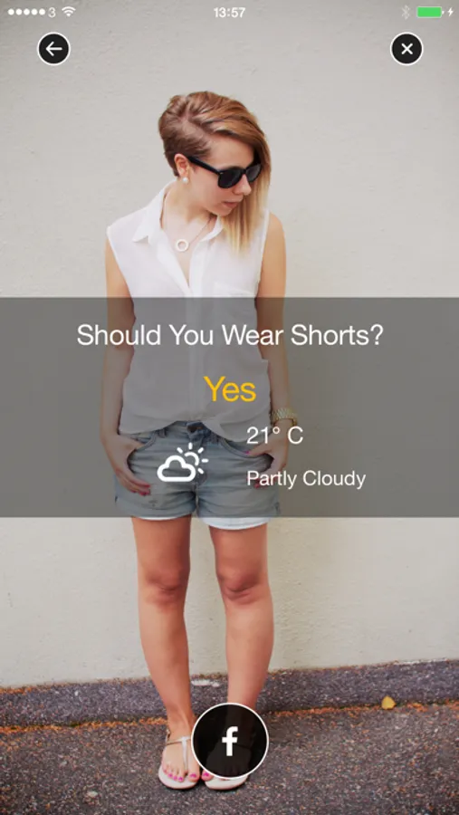 With Shorts Weather you no longer wonder if you should wear shorts or not! -using your current location and the weather forecast for the area this program will give you a recommendation. Furthermore you can now share your shorts with your friends via Facebook!
