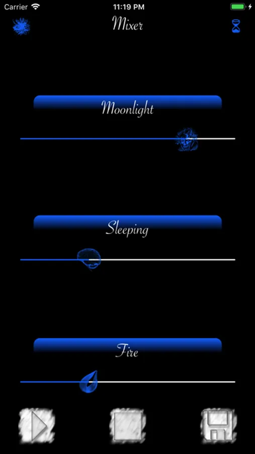 Three sections provide independent sound sources that could be mixed up together and then possibly saved as a preset with related volume levels.