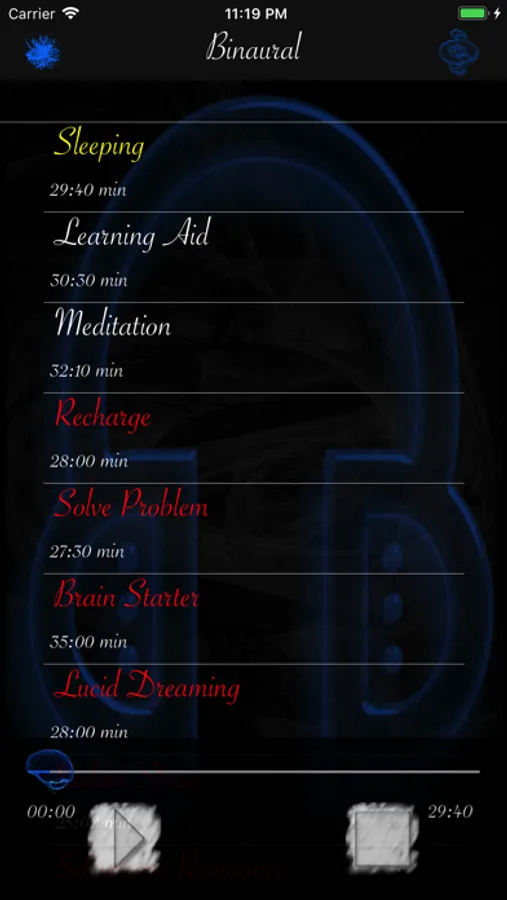 Most of the binaural frequency settings are taken from the Monroe Institute research. For more details inside the app.
