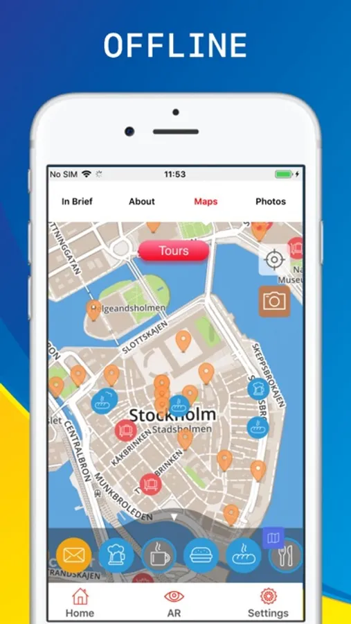 AUGMENTED REALITY, unlike other tourist guides you will be able to discover the city with the best iPhone tool - AR - Just click on the AR button, turn yourself 360° and view on the screen where the best spots are and how to find them. You can also scroll up and down to view the closest and furthest attraction. Slide through the tutorial for more tips.