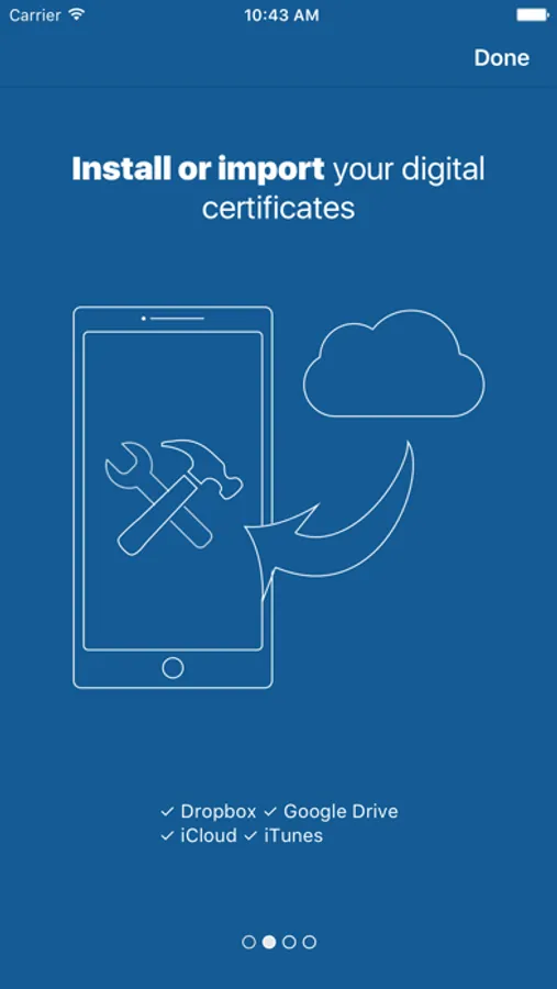 This application supports iPhone, iPad and iPod Touch. It works with most of the official Certification Authorities in Spain and other countries, such as FNMT, Firmaprofesional, Camerfirma or Izenpe among others. You can find out about them in the following link http://www.viafirma.com/en/information