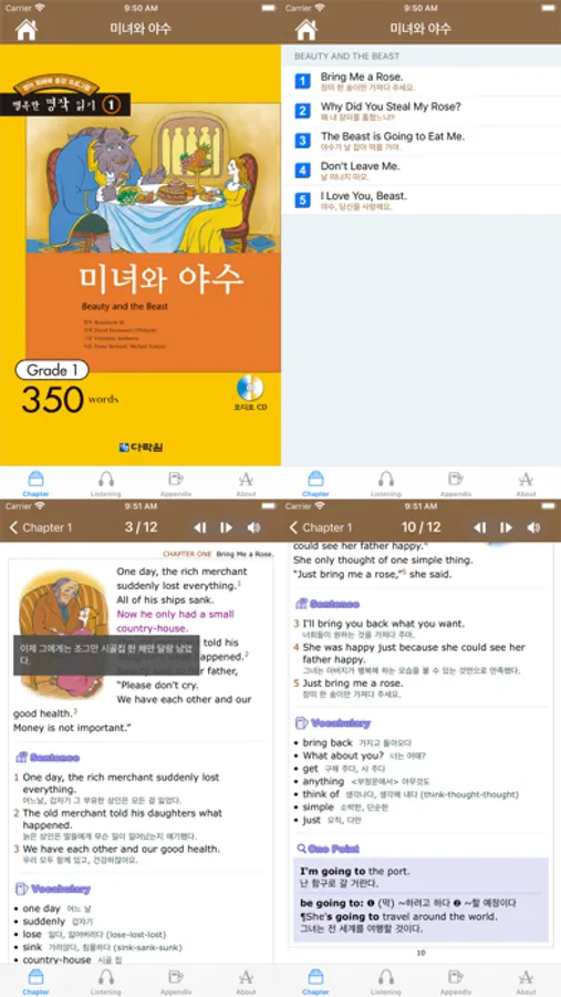 • Grade1 : 350 단어 수준 "미녀와 야수", "성경이야기1" 수록