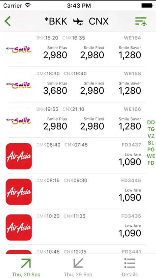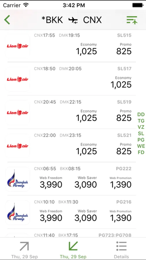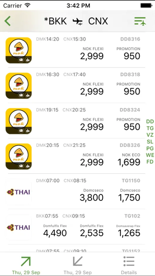 The real simplest DOMESTIC flight search application that you can quickly compare price from major local airlines in Thailand from your device. All available flights will be provided in 3 categories; by price, departure time, and by airlines, to maximally facilitate your comparison.