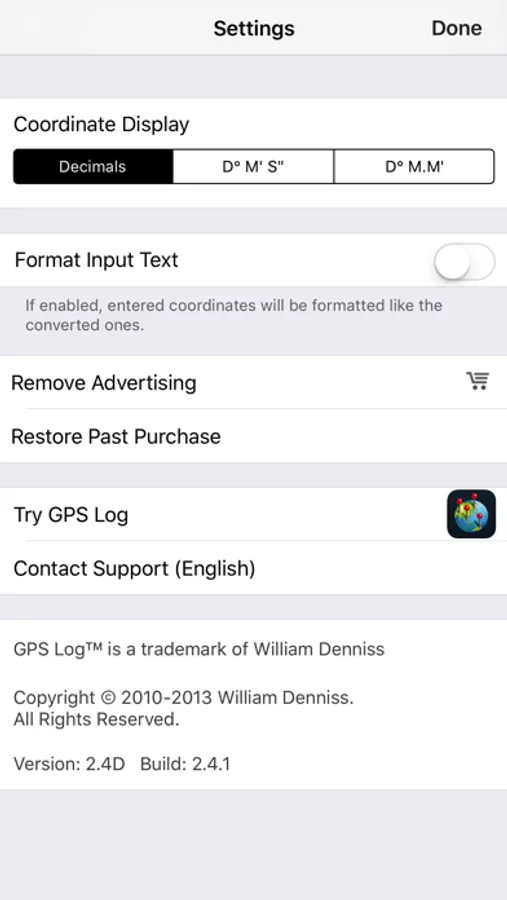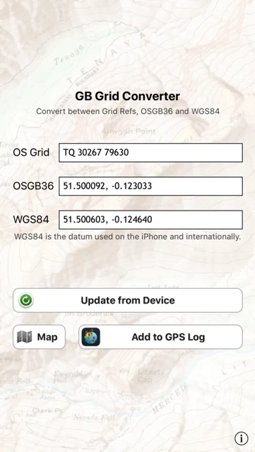 Then, easily view the converted coordinate in the Maps app, or send it to GPS Log (our app for recording your travels). Or copy to the clipboard using the standard iPhone functions.