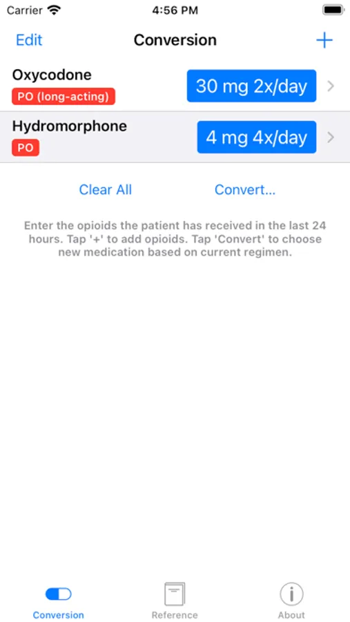 Opioids by Chris Marcellino MD and Norris Vivatrat MD is an opioid analgesic dosage conversion calculator for use by trained medical professionals. The application supports conversion to and from opioids commonly prescribed and used in U.S. hospitals orally, parenterally, or transdermally, including morphine, codeine, hydromorphone, hydrocodone, fentanyl, methadone, oxycodone and oxymorphone. The application is intended to help and instruct in the process of conversion of opioid regimens.