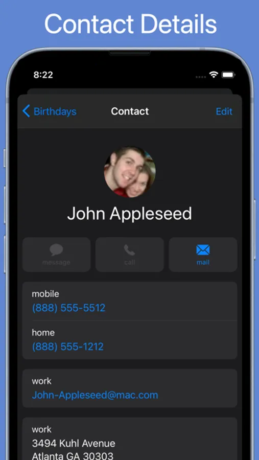 Filter and manage your birthday calendar and contact information more efficiently than ever. Seamlessly add or edit birthdays either directly in your phone's address book or on the BirthdaysPro app. Swiftly view the age, photos, and address book data of your contacts and flip to filter contacts with or without their birthday. Get ready to make every birthday countdown an exhilarating experience!